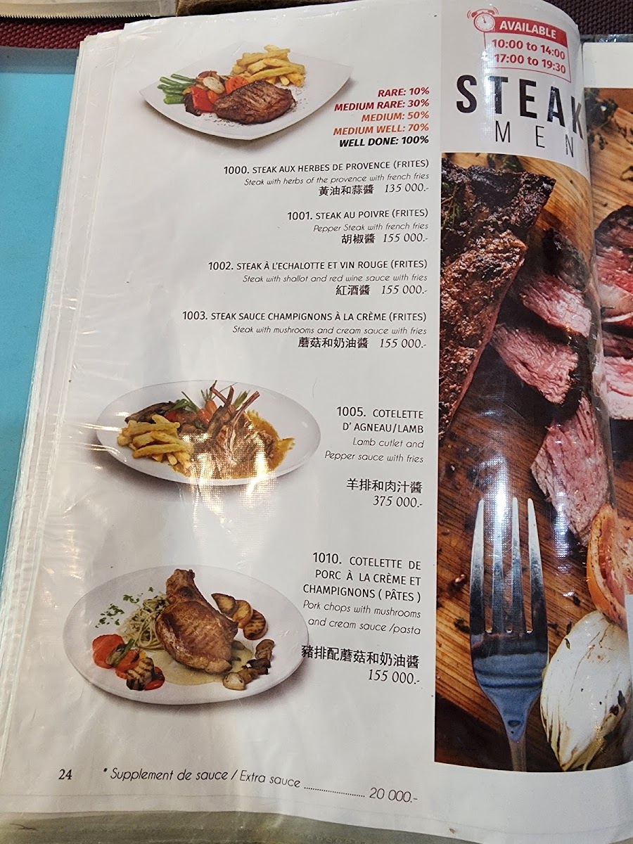 Guests can enjoy freshly baked croissants and baguettes alongside familiar favorites like beef steak with creamy mushroom sauce, lamb chops, and a variety of sandwiches and paninis. The menu also includes crowd-pleasers such as Hawaiian pizza and vegetarian burritos, reflecting a broad appeal beyond traditional French fare. Accompanying the food, warm and comforting beverages like cappuccinos perfectly complement the cozy yet lively atmosphere.